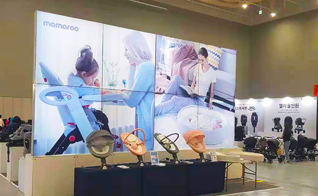 點擊母嬰店拼接款雙面展會燈箱解決方案